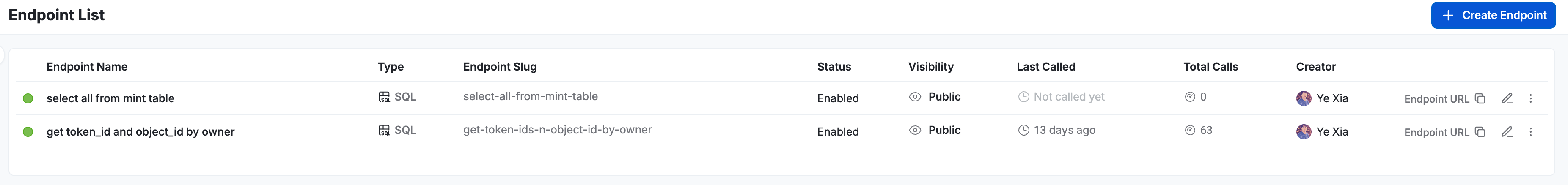 Endpoint: Turn SQL/Subgraph queries into dedicated API endpoints with parameter support for easier API management and detailed request logs.
